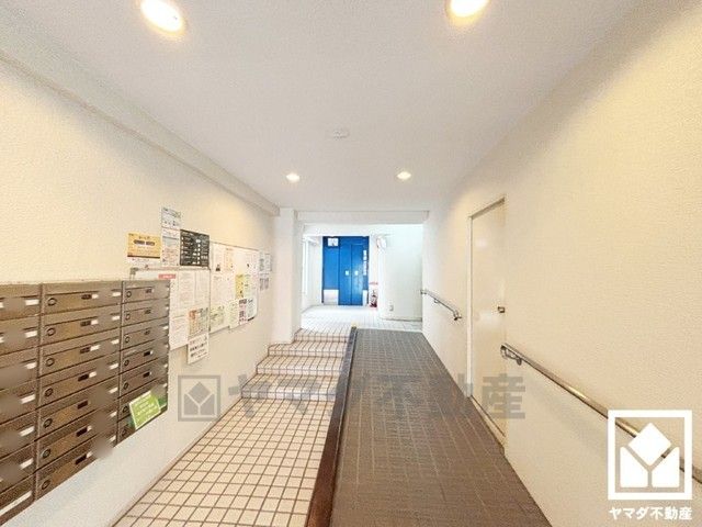 心地よい空間が広がる、清潔で美しいロビー。鍵付きの集合ポストが備わっています。