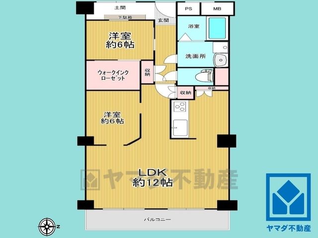 ▲2LDK、専有面積70平米、バルコニー面積6.6平米、5階建て4階部分。