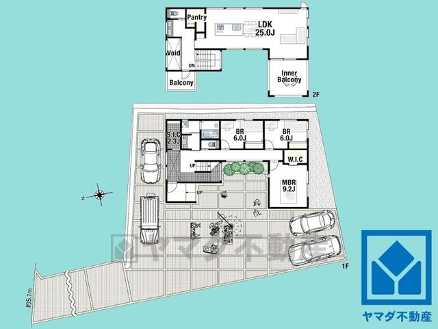 洋9.2畳(1F)、洋6畳(1F)、LDK25畳(2F) |
