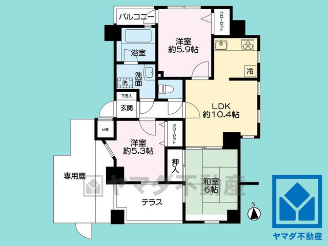 LDK10.4畳、和6畳、洋5.9畳、洋5.3畳 |