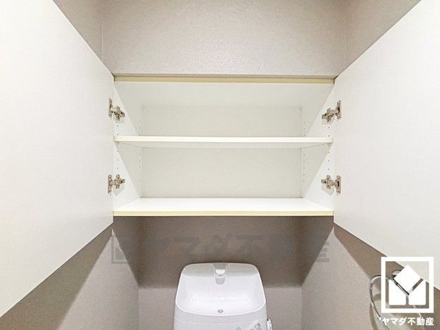 トイレットペーパーのストックや消耗品置き場などとしてお使いいただける吊戸棚がございます。