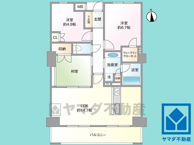 LDK14.7畳、洋6.7畳、洋4.8畳、和0畳 |
