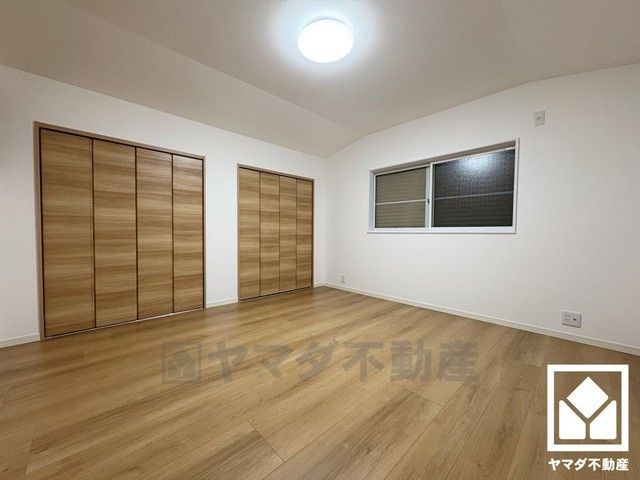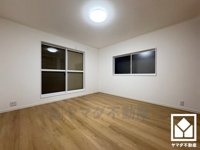 約8帖の2階洋室です。2面採光の大きな窓からは明るい光が降り注ぎます。柔らかな光が差し込むお部屋で、快適で落ち着いた生活をお送りいただけます。
