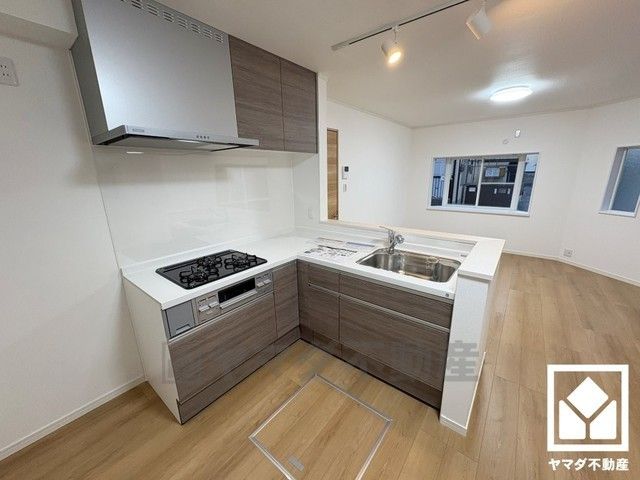 カウンターキッチンなので配膳や片付けがしやすく、お料理中でもお子様の様子が分かって安心です。L型なので作業動線が最短距離で効率良く動けます。ハウステック製です。