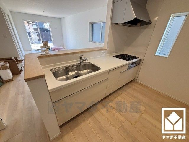 カウンターキッチンなので配膳や片付けがしやすく、お料理中でもお子様の様子が分かって安心です。キッチン横には窓がございますので、昼間は手元が明るく、お料理がはかどります。