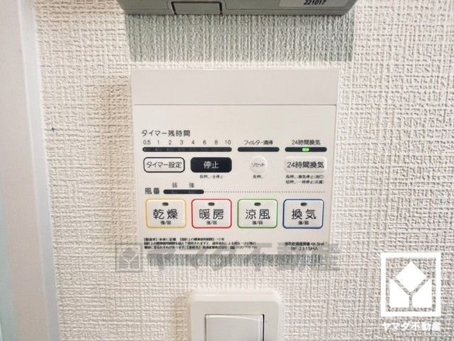浴室暖房乾燥機付き。真冬の寒い浴室を暖かく、また雨の日の洗濯物の乾燥にと多用途に活躍する機能です。
