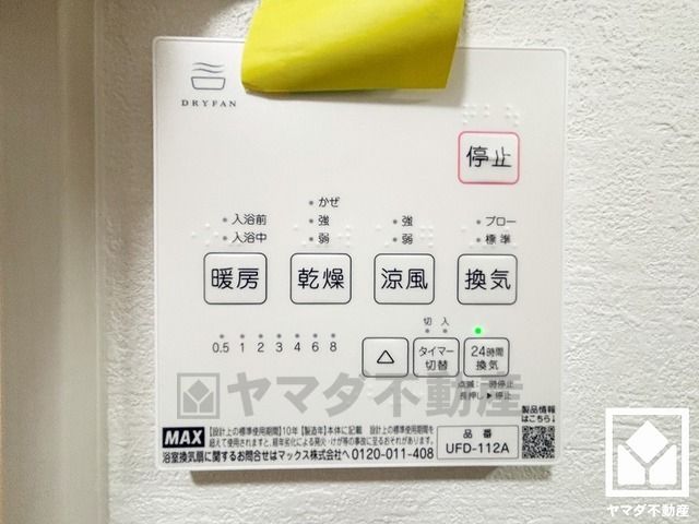浴室暖房乾燥機付き。真冬の寒い浴室を暖かく、また雨の日の洗濯物の乾燥にと多用途に活躍する機能です。