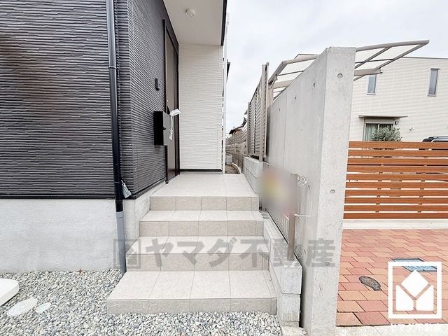 玄関が横向きのため道路から家の中が見えにくく、高いプライバシー性を確保できます。お子様の飛び出し防止にも効果的です。