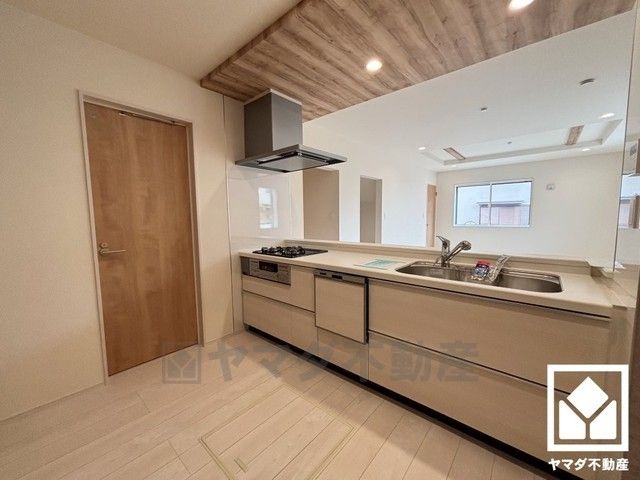 カウンターキッチンなので配膳や片付けがしやすく、お料理中でもお子様の様子が分かって安心です。洗面室へ出入りできる2WAYの扉があり、家事動線もたいへん良好です。
