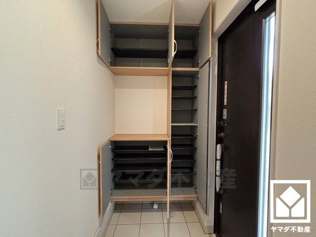 玄関にはシューズボックスを完備。家族の靴もしっかり収納できるので、玄関がいつも片付き、気持ちよくお客様を迎えられます。