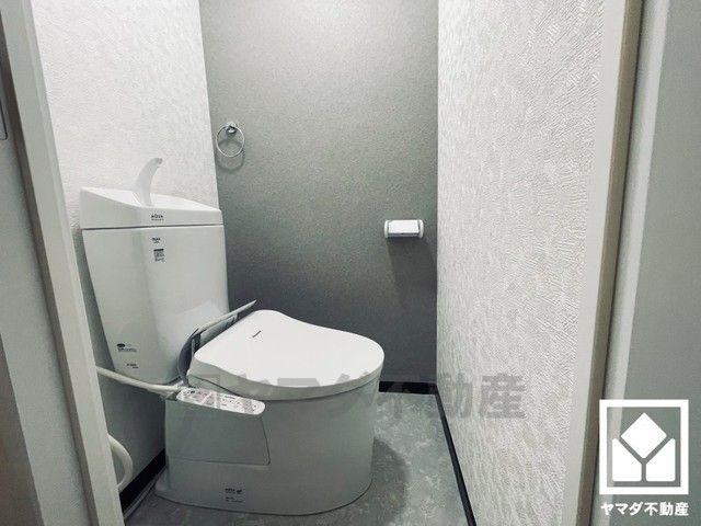 明るく清潔感溢れるトイレです。温水洗浄便座付きで、季節を問わずいつでも温かい便座をお使いいただけます。