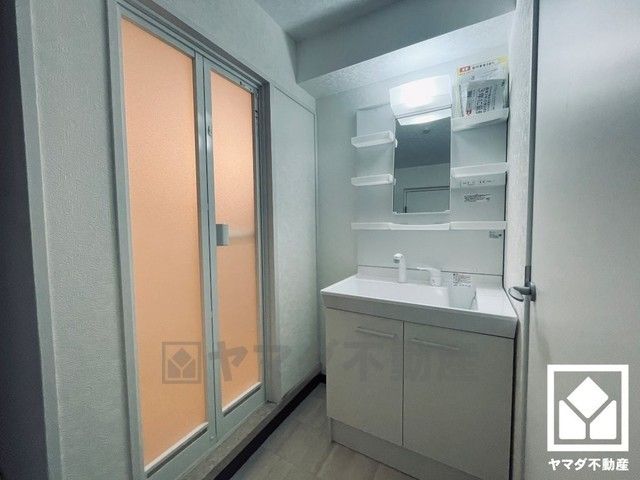 収納付きでスッキリお使い頂ける洗面台です。洗面ボウルが広めなので、忙しい朝でも身支度がしやすく時短になります。