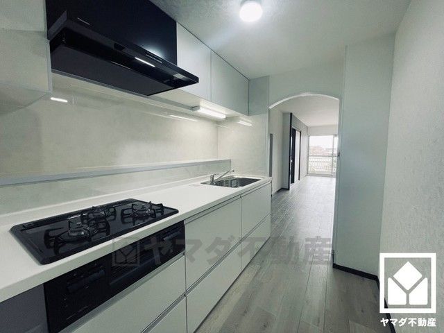 キッチンは空間を有効活用できる壁付けタイプ。毎日の料理がもっとスムーズになる、便利な3口コンロ付き。