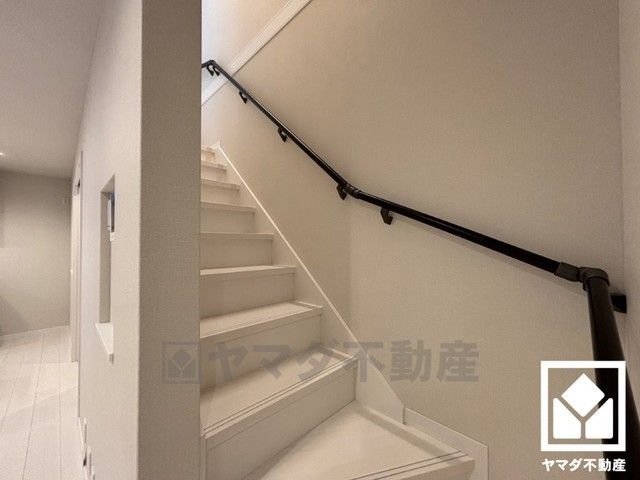 手すり付きの階段。バリアフリーにも配慮された、家族みんなが過ごしやすい住宅です。