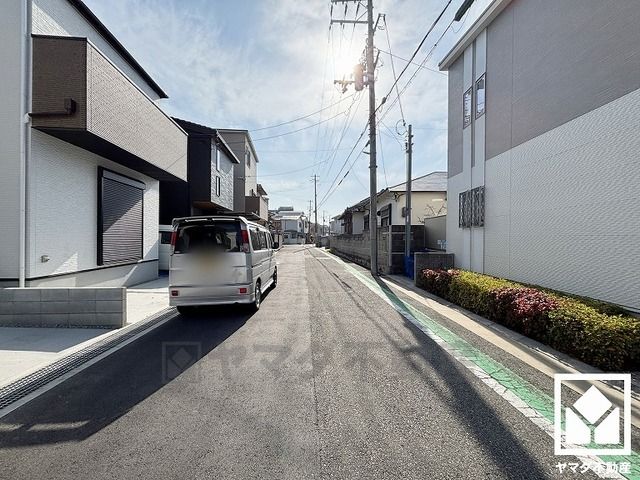 前面道路幅員約6.13mとゆったりとした広さがあるのでファミリーカー等の車の出入れも楽にできます。