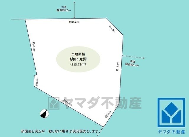 公道 東 幅員5.1m (接面17.3m) 公道 北 幅員4m (接面15.2m) |