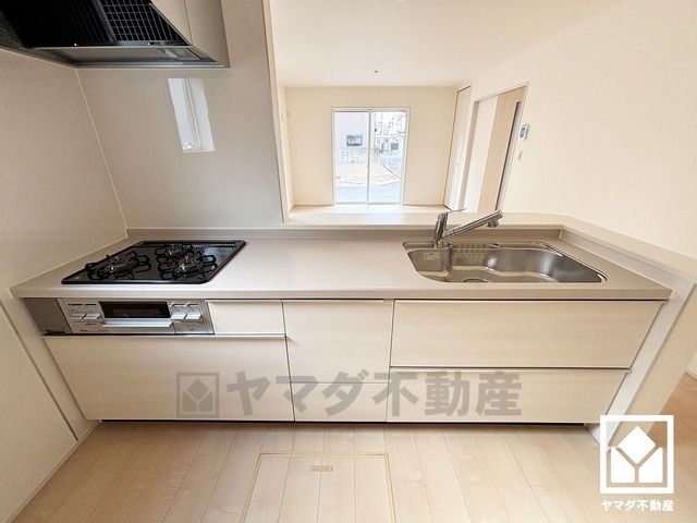 カウンターキッチンなので配膳や片付けがしやすく、お料理中でもお子様の様子が分かって安心です。浄水器付きなので、いつでも安心・安全な水をお使いいただけます。