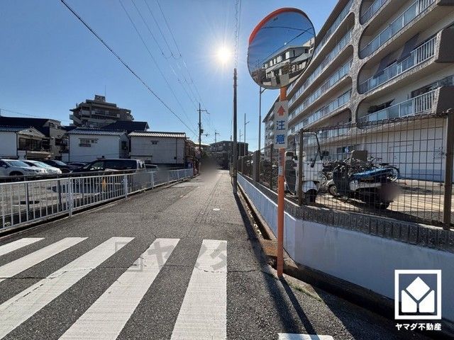 敷地の四方とも道路に面しており開放感があります。道路幅もゆったりとしており隣地と距離がございますので、陽当たり・風通し良好です。