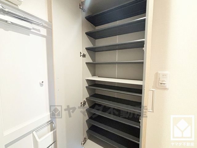 玄関にはシューズボックスを完備。家族の靴もしっかり収納できるので、玄関がいつも片付き、気持ちよくお客様を迎えられます。