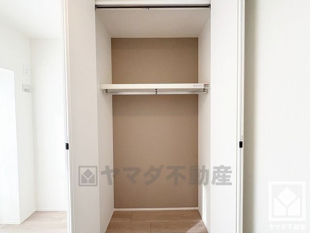 収納力豊富なウォークインクローゼット付き。季節の荷物、趣味の道具や日用品のストックなども収納可能。棚も設置されており、整理整頓がしやすい設計になっています。