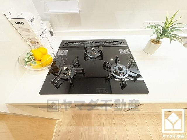 家族のごはん作りがはかどる。同時調理ができる3口コンロ付き。