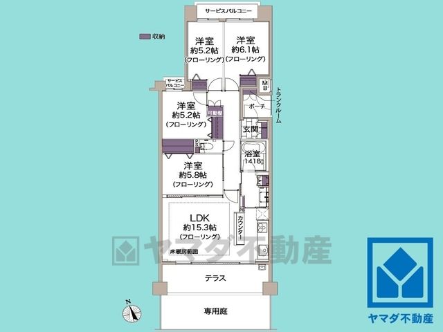 LDK15.3畳、洋6.1畳、洋5.8畳、洋5.2畳 |