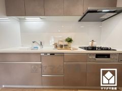 新調:人造大理石システムキッチン(食洗機・浄水気付き)、ユニットバス(浴室乾燥機付き)、洗面化粧台、洗濯パン、トイレ(温水洗浄便座)、ダウンライト、建具、電気温水器、下足入れ