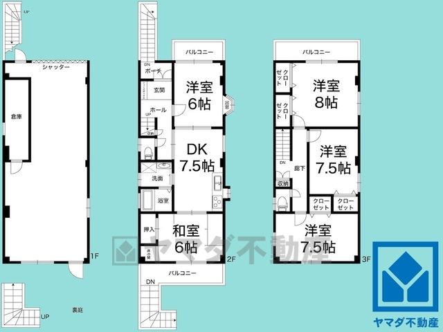 DK7.5畳(2F)、洋6畳(2F)、和6畳(2F)、洋8畳(3F)、洋7.5畳(3F) |