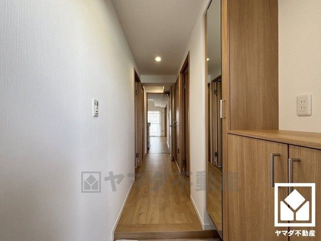 玄関にはシューズボックスを完備。家族の靴もしっかり収納できるので、玄関がいつも片付き、気持ちよくお客様を迎えられます。お出かけの前のチェックにも便利な鏡付きです。