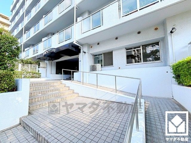 バリアフリーに配慮された、スロープ付きのエントランスアプローチ。