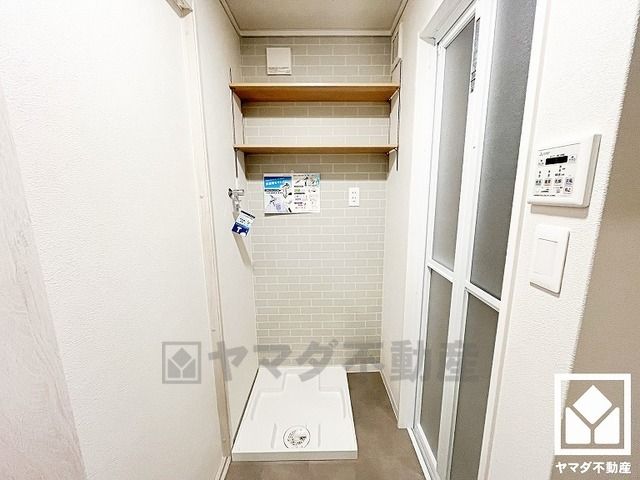 室内洗濯機置場がございますので、天候に左右されず洗濯していただけます。上部に棚があるので消耗品などをスッキリ置けるのも嬉しいポイント。