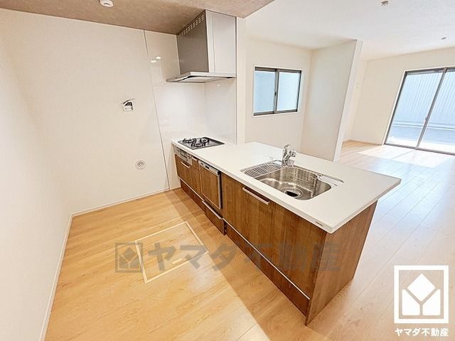 フラットタイプのカウンターキッチンなので配膳や片付けがしやすく、お料理中でもお子様の様子が分かって安心です。災害時の非常食や食料品のストックなども保存できる床下収納付き。