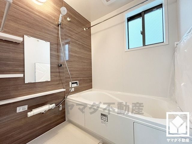 浴室暖房乾燥機付き。真冬の寒い浴室を暖かく、また雨の日の洗濯物の乾燥にと多用途に活躍する機能です。
