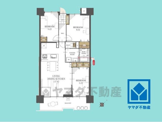 リビングに約5.3帖の引き戸の洋室が隣接しており、約22.7帖の大空間として一体利用も可能です。