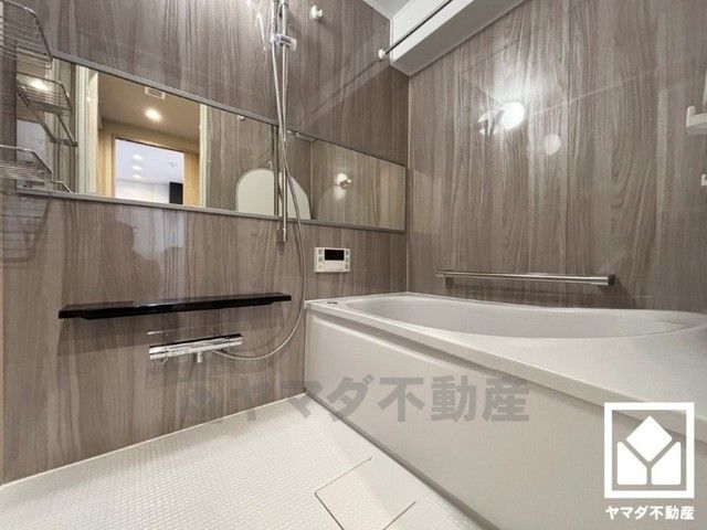 1日の疲れを癒す浴室でゆったりリフレッシュ。ナチュラルな木目調のパネルは落ち着いた雰囲気を演出してくれます。鏡が横長なので、お子様でも見やすく便利です。